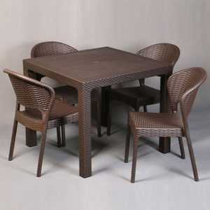 سلام یه عکس از مدل میز صندلی پلاستیکی با رنگ قهوه تو سایت گذاشتین که پایه هاش فلزیه، نما ی اون مثل چوبه تا پلاستیک و کاری زیبا بود.
