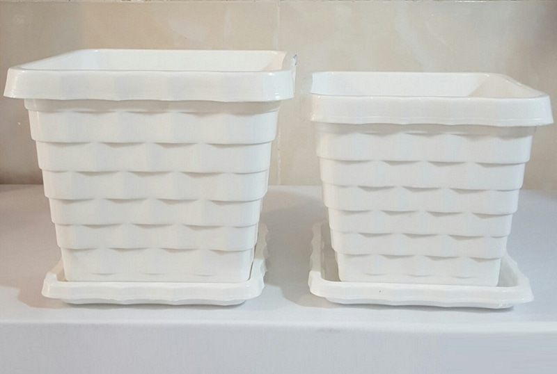 یک گلدان پلاستیکی مربع شکل بزرگ با فضای بیشتری برای قرار گرفتن ریشه های گیاه، به پرورش دهنده گیاه این امکان را می دهد تا گیاهان بزرگ تری بکارد که نگران خشک شدن ریشه گیاه نباشند.