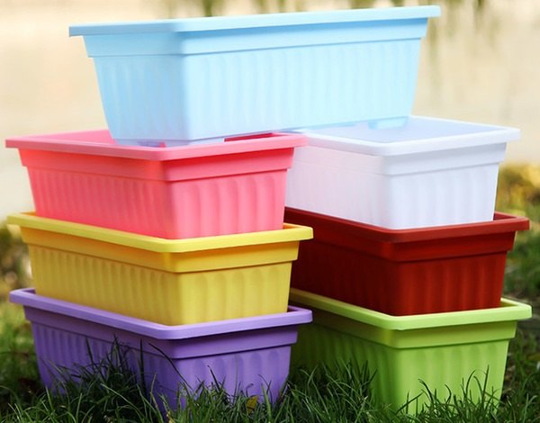 بسیاری از افراد از گلدان های پلاستیکی مستطیلی ارزان قیمت برای ردیف کردن برگ ها و گل ها استفاده می کنند که می تواند جذابیت بیشتری داشته باشد، در واقع این گلدان ها بسیار محکم هستند و حتی در جابجایی آن ها شکسته نمی شوند.